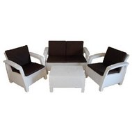 В комплект входит: кресло - 2 шт, столик журнальный, двухместный диван, подушки на сидение и на спинку (бежевый/коричневый).
