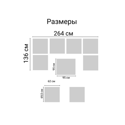 п-образный диван: длина - 136, ширина - 264, высота - 75,