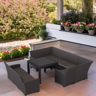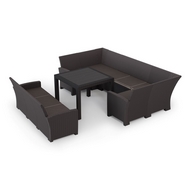 Комплект мебели под ротанг Калифорния (California) с П-образным диваном 136х264х136 см 6 мест, 3х-местным диваном 175х61 см, с подушками на сиденье и столом 95х95см