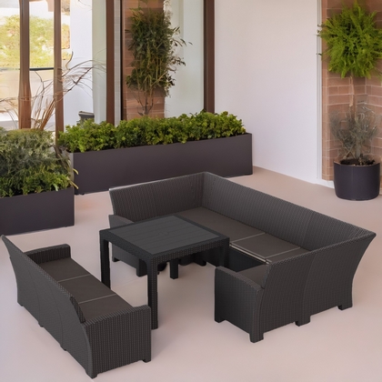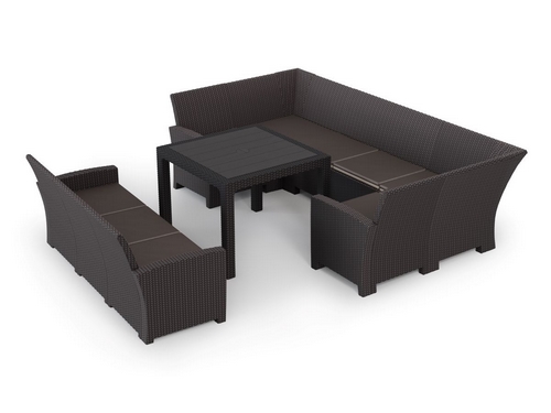 Дизайн пластика под ротанг придает мебели естественный вид и гармонично сочетается с любым ландшафтом.