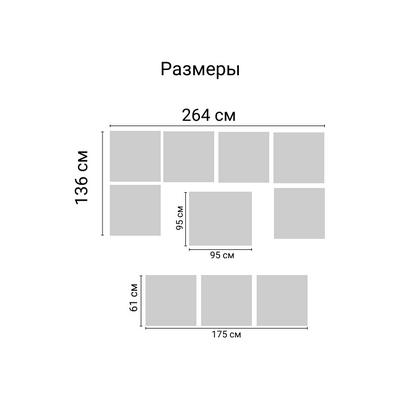 п-образный диван: длина - 136, ширина - 264, высота - 75,