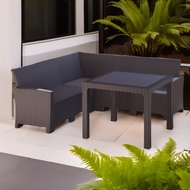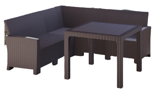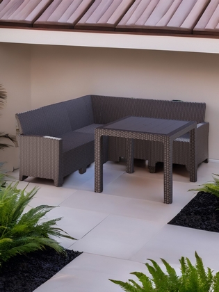 Дизайн пластика под ротанг придает мебели естественный вид и гармонично сочетается с любым ландшафтом.