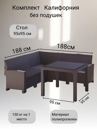 Комплект мебели под ротанг Калифорния (California) с угловым диваном 188х188 см 5 мест без подушек, со столом 95х95 см