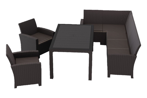 Дизайн пластика под ротанг придает мебели естественный вид и гармонично сочетается с любым ландшафтом.