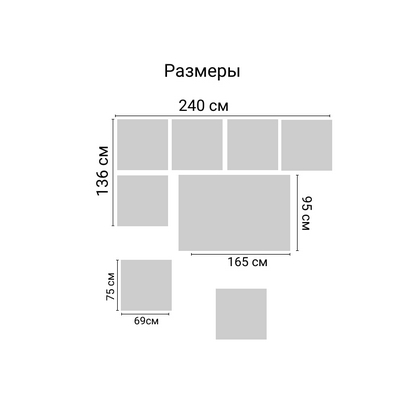 угловой диван: длина - 240, ширина - 136, высота - 74,