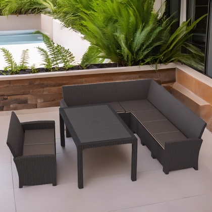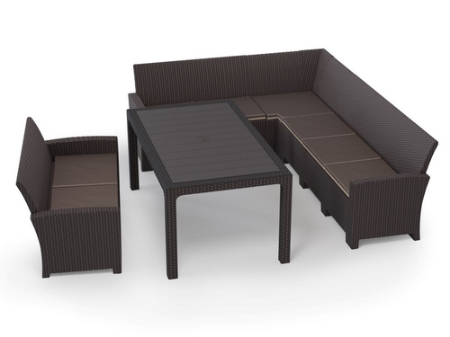 Дизайн пластика под ротанг придает мебели естественный вид и гармонично сочетается с любым ландшафтом.