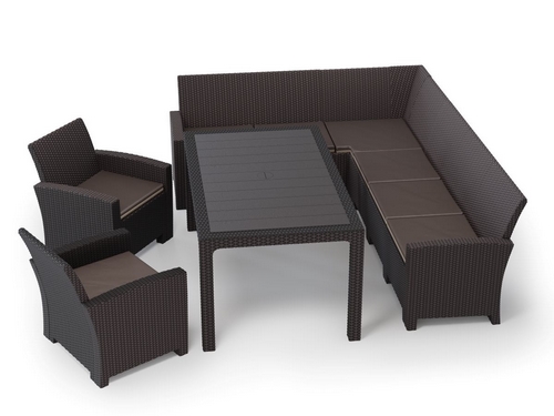 Дизайн пластика под ротанг придает мебели естественный вид и гармонично сочетается с любым ландшафтом.