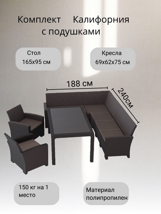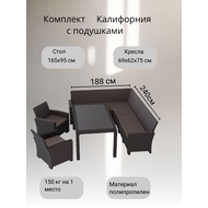 Комплект мебели под ротанг Калифорния (California) с угловым диваном 240х188 см 6 мест, 2 креслами, с подушками на сиденье и столом 165х95 см.