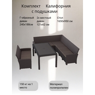 Комплект мебели под ротанг Калифорния (California) с угловым диваном 240х188 см 6 мест, 2х местным диваном 121х62 см, с подушками на сиденье и столом 165х95 см.