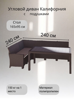 Комплект мебели под ротанг Калифорния (California) с угловым диваном 240х240 см с подушками на сиденье и столом 165х95 см.
