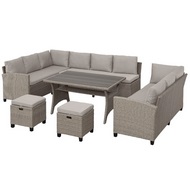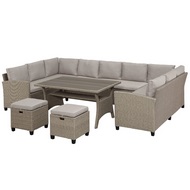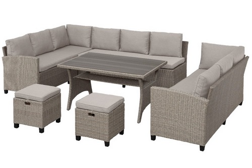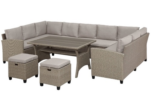 В комплект входит: диван - 3 шт, стол, пуф - 2 шт.