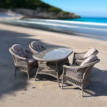 Комплектация: кресло с подушками - 4 шт., стол - 1 шт., зонт - 1 шт.