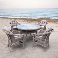 Комплектация: кресло с подушками - 4 шт., стол - 1 шт., зонт - 1 шт.