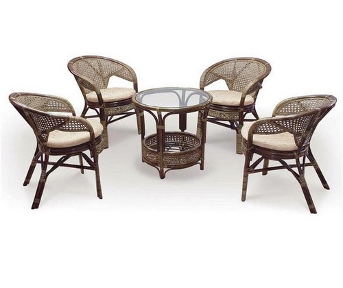 Натуральный ротанг, столешница - закаленное стекло.