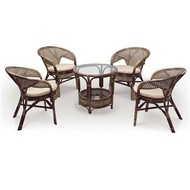 Комплект PELANGI 02/15 стол и 4 кресла (без подушек) натуральный ротанг, walnut (грецкий орех)