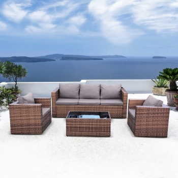 Комплект плетеной мебели AFM-302AL Brown поставляет с подушками в комплекте.