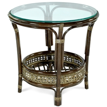 Материалы изделий: каркас - натуральный ротанг, столешница - стекло, подушки - рогожка с мягким наполнителем.