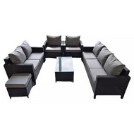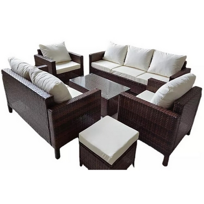 Комплектация: трехместный диван, раскладной диван, односпальный диван-кресло - 2 шт, пуфик, столик, подушки.