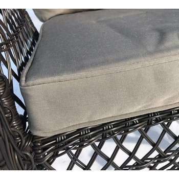 Цветовое исполнение (каркас/подушки): коричневый / тёмно-бежевые с серым отливом (цвет подушек можно посмотреть на фото 2 и 3).