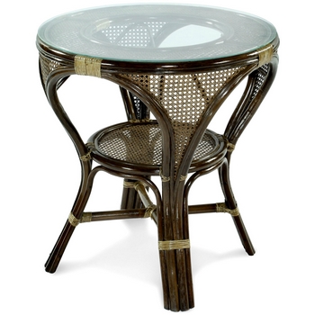 Материалы изделий: каркас - натуральный ротанг, столешница - стекло, подушки - рогожка с мягким наполнителем.