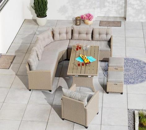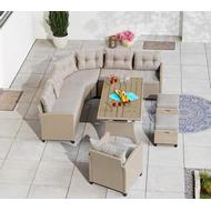 В комплект входит: стол, угловой диван (угловой элемент, 2 модуля), кресло, пуф - 2 шт.