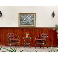 Материалы изделия: каркас - натуральный ротанг, столешница - стекло, подушки - ткань твил с мягким наполнителем.