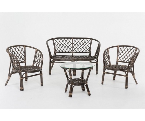 Комплект плетеный для отдыха Багамы 01-16 из натурального ротанга, цвет: темный коньяк, подушки мексика, коричневые