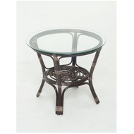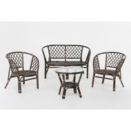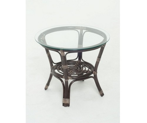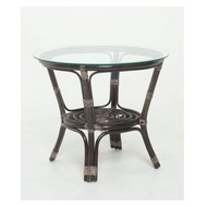 Каркас - натуральный ротанг, подушки- ткань с мягким наполнителем, столешница - стекло.