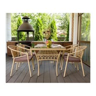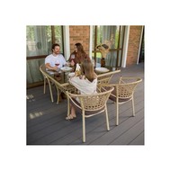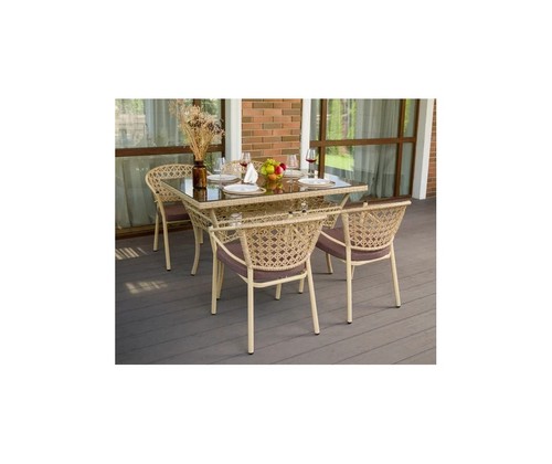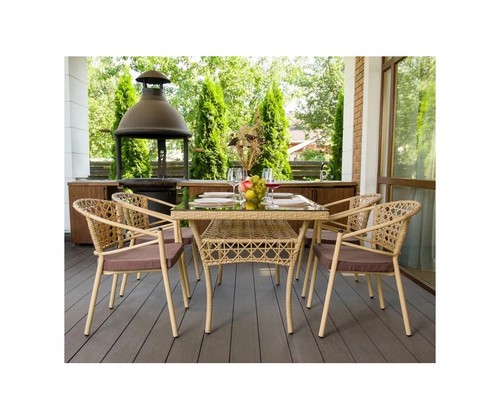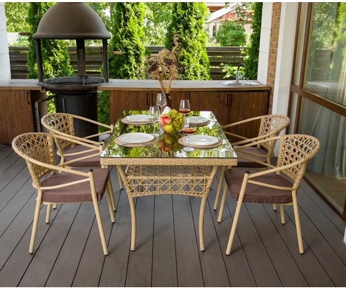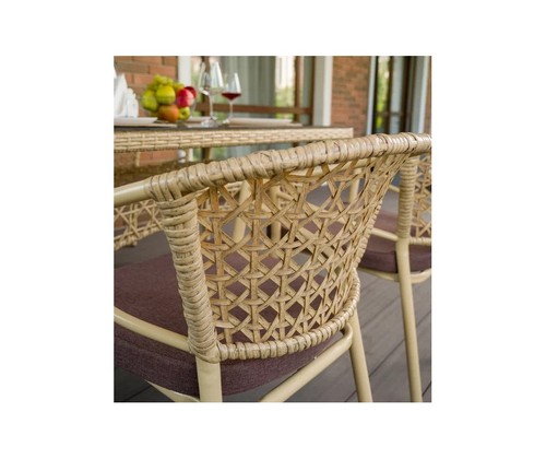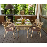 Искусная оплетка из искусственного ротанга придает комплекту изысканный вид.