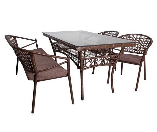 Искусная оплетка из искусственного ротанга придает комплекту изысканный вид.