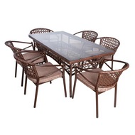 Материал: каркас - металл с порошковым покрытием, плетение - искусственный ротанг, столешница - закаленное стекло.