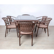 Комплект садовой мебели стол Адлер 1,6 м и 6 стульев Латте с подушкой