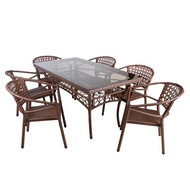 Материал: каркас - металл с порошковым покрытием, плетение - искусственный ротанг, столешница - закаленное стекло.