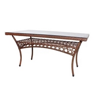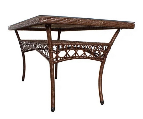 Материал: каркас - металл с порошковым покрытием, плетение - искусственный ротанг, столешница - закаленное стекло.