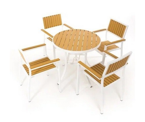 Комплект: стол + 4 кресла DS-08-01-02 изготовлен из полимерно-композитного материала декинг на железном каркасе.