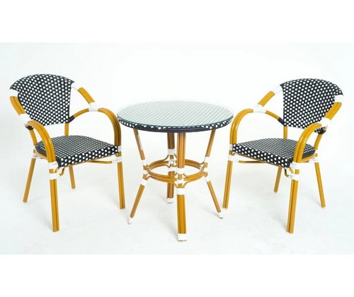 Комплект: стол и 2 кресла CS-01-01-02 из техноротанга на железном каркасе подойдет для лоджии, беседки, террасы или летнего кафе.