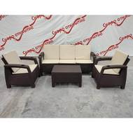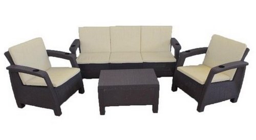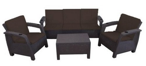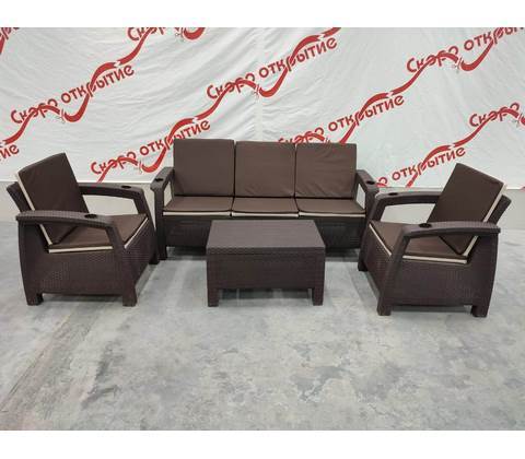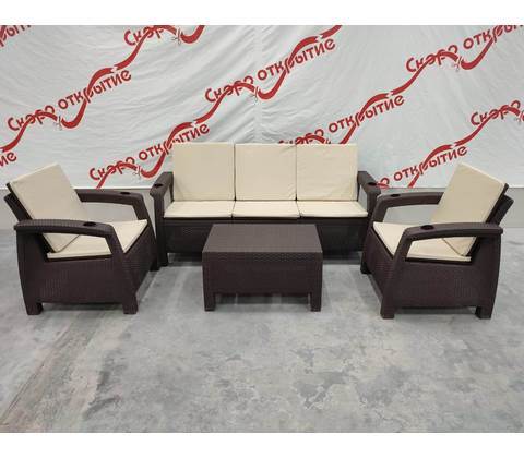Комплект мебели из всепогодного пластика с имитацией ротанга.