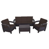 В комплект входит: кресло - 2 шт, журнальный столик, трехместный диван, подушки на сидение и на спинку.
