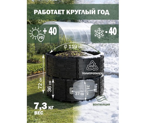 Компостер садовый усиленный с люком Бастион 810 л - это профессиональное решение для переработки органических отходов, обеспечивающее получение качественного компоста при минимуме усилий.