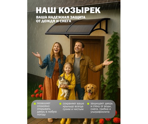 Надежный и стильный козырек из поликарбоната для защиты входной двери, крыльца и порога от дождя, снега и солнечных лучей.