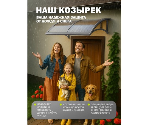 Надежный и стильный козырек из поликарбоната для защиты входной двери, крыльца и порога от дождя, снега и солнечных лучей.
