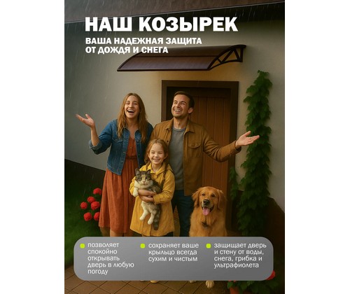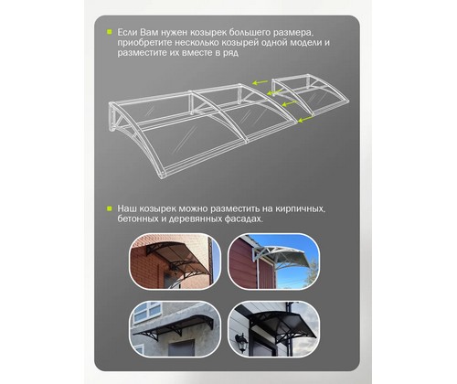 Надежный и стильный козырек из поликарбоната для защиты входной двери, крыльца и порога от дождя, снега и солнечных лучей.