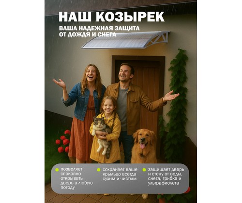Надежный и стильный козырек из поликарбоната для защиты входной двери, крыльца и порога от дождя, снега и солнечных лучей.
