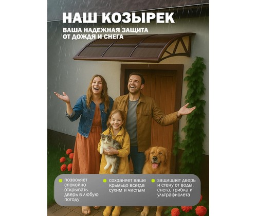 Надежный и стильный козырек из поликарбоната для защиты входной двери, крыльца и порога от дождя, снега и солнечных лучей.