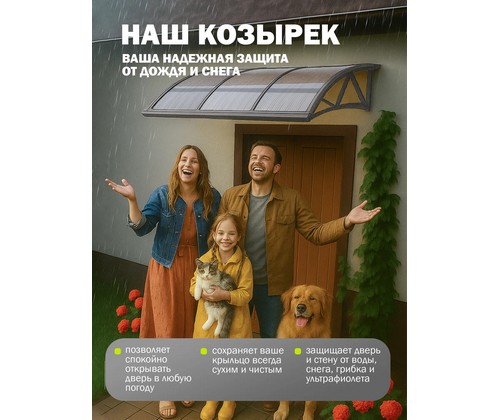 Надежный и стильный козырек из поликарбоната для защиты входной двери, крыльца и порога от дождя, снега и солнечных лучей.