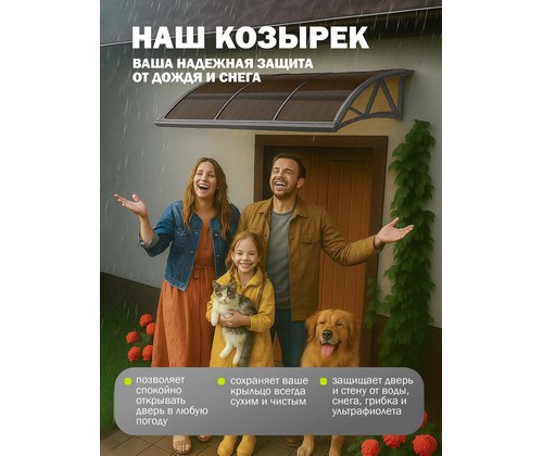 Надежный и стильный козырек из поликарбоната для защиты входной двери, крыльца и порога от дождя, снега и солнечных лучей.