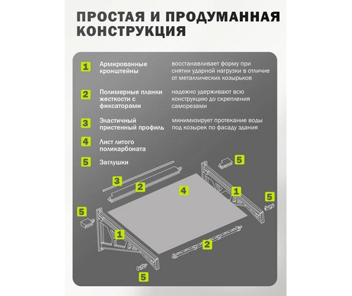 Материалы изделия: поликарбонат 4 мм, армированный полимер.