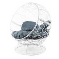 Кресло Апельсин с ротангом (белое, серая подушка)