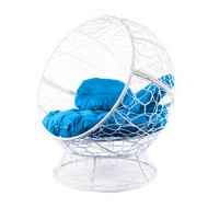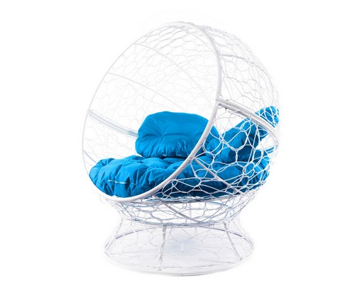 Кресло Апельсин с ротангом (белое, синяя подушка)