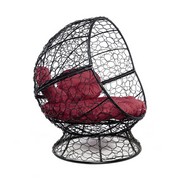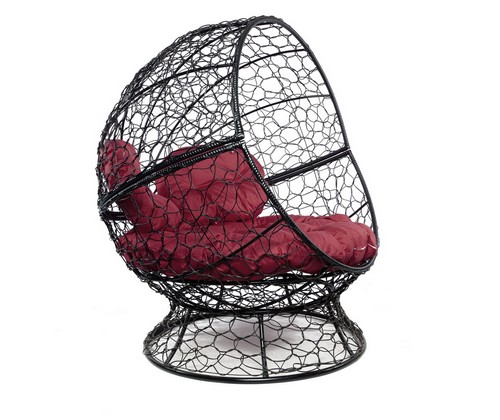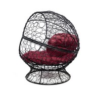 Кресло Апельсин с ротангом (черное, бордовая подушка)